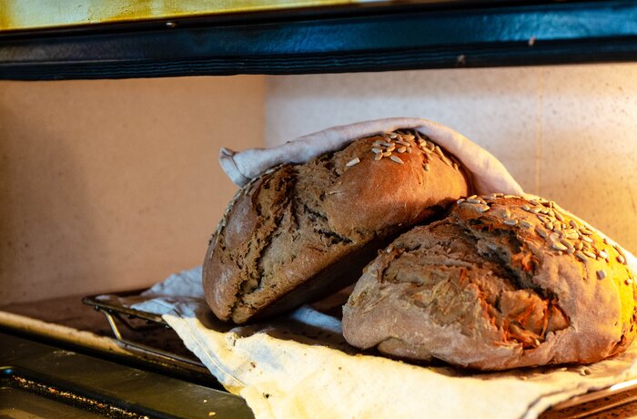 Direkt gegenüber des Hotels liegt die Bäckerei. Morgens wird dort gebacken und wenig später liegt das Brot auf dem Frühstückstisch. Frischer geht es nicht.