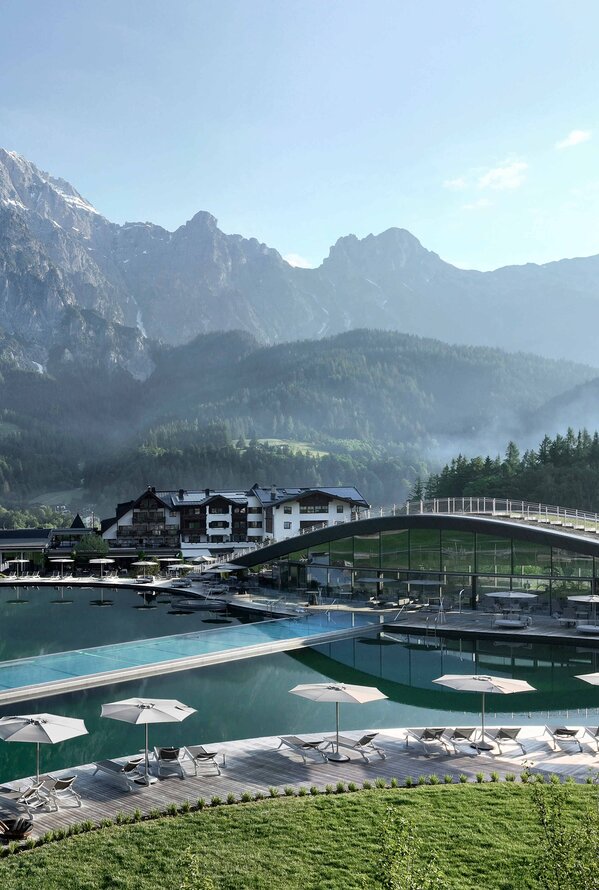 Mehr als 700 Bäume wurden in den letzten Jahren rund um den Krallerhof gepflanzt. Energie wird selbst erzeugt – durch eine Photovoltaikanlage sowie ein eigenes Biomasse-Heizwerk. Der gesamte Hotelbetrieb läuft atomstromfrei, LED-Beleuchtung und digitale Lösungen wie die Gästemappe sparen zusätzlich wertvolle Ressourcen.